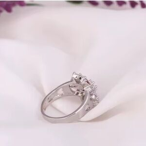 Elegant ring with multicolor gemstones in a floral pattern. Set on a silver band. Perfect for any occasion.
