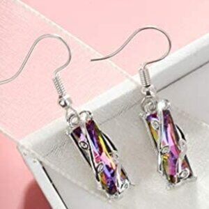 Colorful Crystal Clear Delicate Silver Plated Colorful Dangle Earrings, VP1008