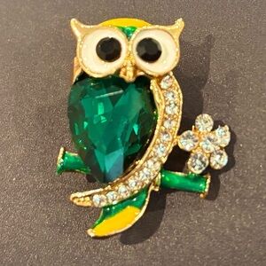 Colorful Crystal Owl Brooch NWT Measures Approx. 1”W x 1.25”H