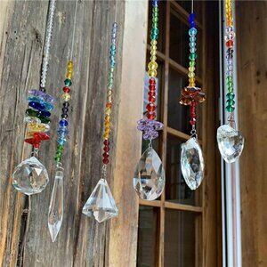🧿Decorative Diversity: The octagonal crystals, tear drop crystals and chakra crystal balls are suitable for various decorative occasions,such as: garden project, baby rooms, christmas tree, curtains, windows, plants, trees, chandeliers, walls, shelves, cabinets, car, porch, balcony, frontdoor, etc