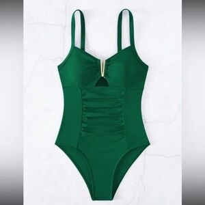 Colorful Cut out Adjustable Straps Ruched Monokini One Piece Swimsuit