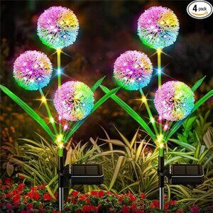 Upgraded 4 Pack Outdoor Solar Lights with 144 LED: Our 2024 new solar outdoor garden lights are built with multi-color 144 LED totally, which can bring colorful light at night, more bright and charming. Like real dandelions flowers, realistic stems and leaves in your garden, our solar lights outdoor decorative will add a touch of elegance to your yard and make every outdoor moment truly memorable