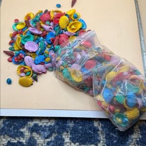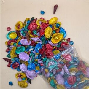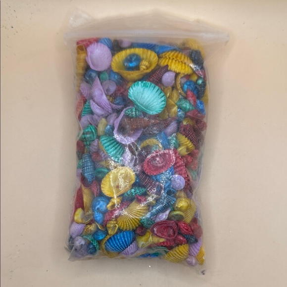 Vibrant bag of decorative seashells. Perfect for crafts and decor. Features a mix of colors including red, blue, yellow, and purple.8 oz bag.