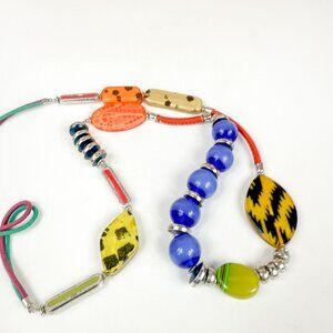 Colorful Designer Art Glass Acrylic Leather Metal Beaded Statement Necklace