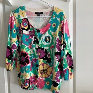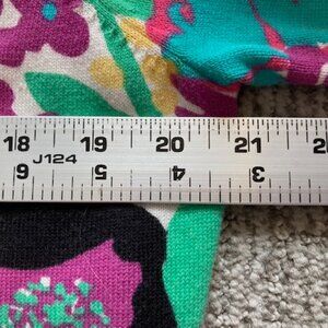 Gorgeous cardigan sweater. This sweater personifies Spring/Summer. Colorful floral design. Very good condition. Size XL. 100% cotton. Approx. measurements: 20.5 inches pit to pit and 24.5 inches long. Box X.
