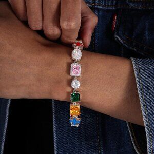 Features: This unisex bracelet features a vibrant, rainbow-colored cross design with sparkling cubic zirconia stones set throughout a sturdy link chain. The 14k gold plating makes it gleam beautifully, perfect for elevating casual or dressy outfits. Secure double safety clasp ensures it stays put.