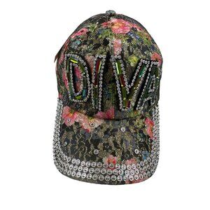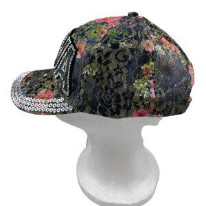 Colorful Diva Floral Bling Cap Adjustable Rhinestone Accents Sparkly By Bjorca