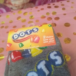 Fun gray socks with colorful dots design. Perfect for adding a playful touch to your outfit.