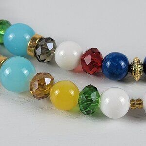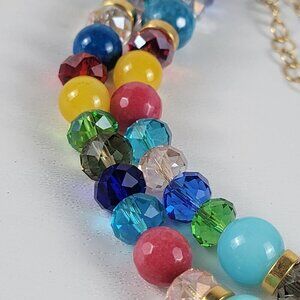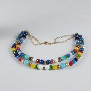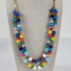 Colorful Double Strand Glass And Agate Beaded Layered Necklace 22 In Gold Tone