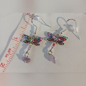 Add a touch of whimsy to your outfit with these colorful dragonfly dangle earrings with natural stones. Featuring vibrant hues, these earrings are perfect for any occasion and crafted locally in Key Largo, Florida Keys. Hooks are stamped 925.