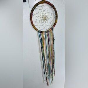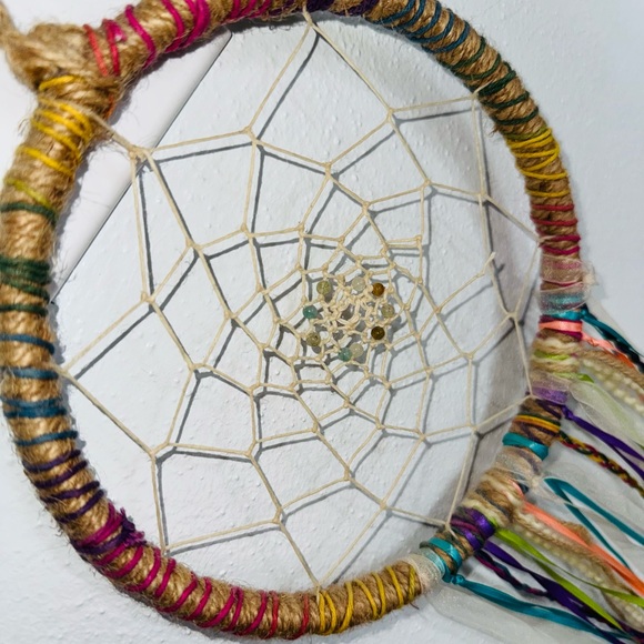 Enhance your space with this vibrant dreamcatcher. Featuring a rainbow of colors, it adds a touch of whimsy to any room. Kiddo upgraded to a witchy dream catcher and would love for this to go to another home to be loved. Handmade from a friend