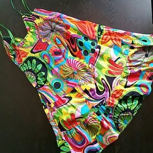 Green strapped Dress with colorful floral design. Very flowy, so comfortable. Only worn a couple times.