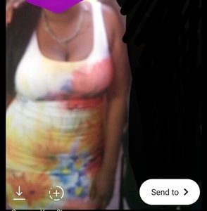 Colorful dress with pretty flower print blue white yellow and red colors I'm "5"7" it's above my knee but not so short stretchy material bodycon material Fits as is XL Size xl Brand