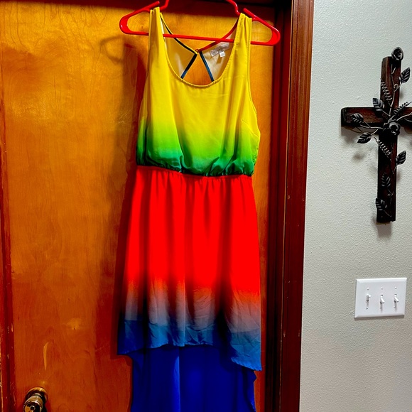 Colorful dress, worn once. High low skirt length. Button back detail. Bundle for an awesome deal.