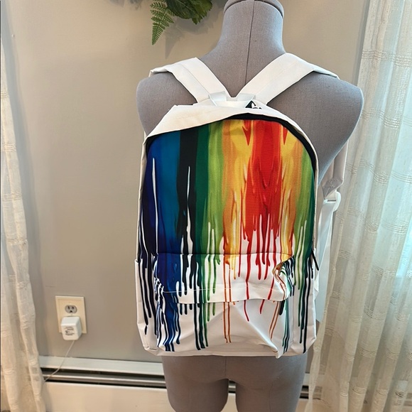 NWOT Vibrant backpack with a unique drip design.