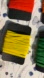 Set of elastic bands in vibrant colors. Includes yellow, red, green, orange, pink, light blue, and black. 6mm wide.