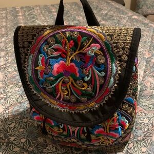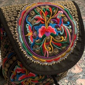 This vibrant backpack features intricate embroidery in a stunning array of colors. Perfect for adding flair to any outfit, it's both stylish and practical.