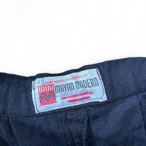 Black skirt with vibrant embroidery. Features red, green, yellow, and blue patterns. Guatemalan 100 % cotton adjustable skirt. Fit sizes 6-possibly 10.