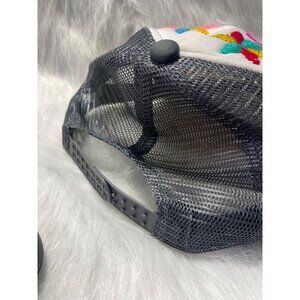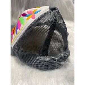Colorful Embroidered Floral Mesh Trucker Hat Snapback Adjustable Gray & Multicol