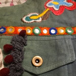Stand out with this vibrant jean jacket featuring intricate embroidery. Perfect for adding a splash of color to any outfit.