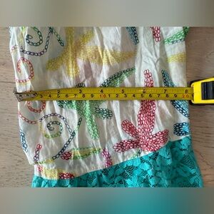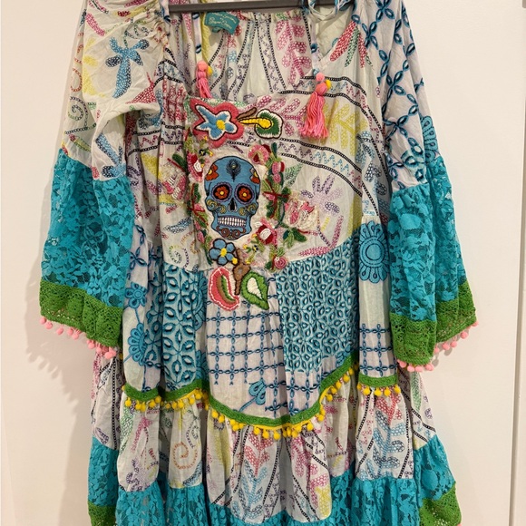 Vibrant mini dress featuring intricate embroidery and a playful design. Features tassels, Pom Pom and bead details. Perfect for adding a splash of color to your wardrobe.