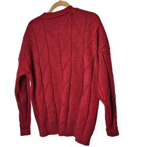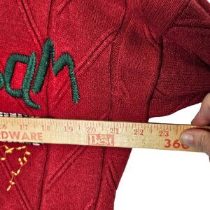 Colorful Embroidered Patchwork Red Cardigan Sweater Button Front Pockets Size M