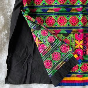 Colorful, embroidered tunic with tiny mirror details and a solid black back.