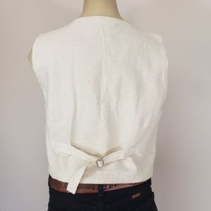 Beautiful boho cream button down cotton vest with colorful embroidery on front. Wooden buttons. Plain back with buckle. EUC