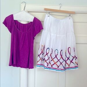 Colorful Embroidered White Skirt