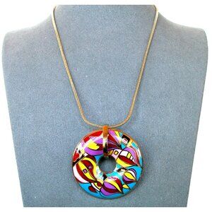 Colorful Enamel Abstract Pendant Necklace & Earrings Set By Charming Charlie