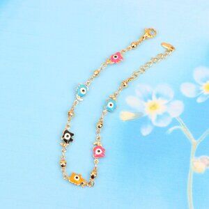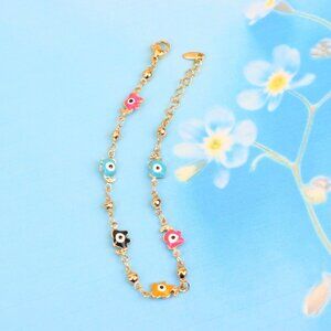 "Colorful Evil Eye Elephant Rose Gold Anklet with Adjustable Chain, XPAL1031