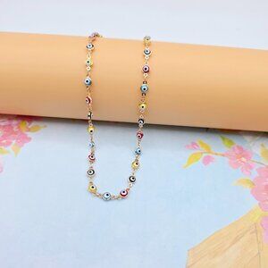 "Colorful Evil Eye Rose Gold Necklace, 18 Inch, Gold Plated Brass, XPNL0102
