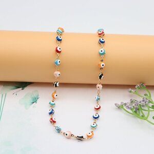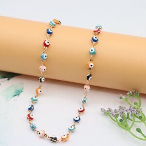 Vibrant multi-color evil eye necklace that adds a fun pop of color with protective charm vibes.