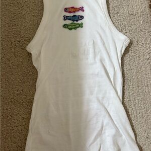 Enhance your pet's style with this vibrant fish embroidered accessory. Featuring pink, blue, and green fish designs, it's perfect for adding a splash of color.