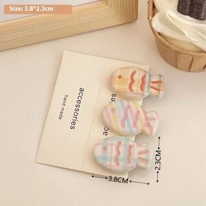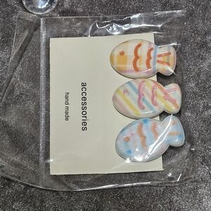Add a playful touch to your hairstyle with these colorful fish-shaped hair clips. Perfect for any occasion.