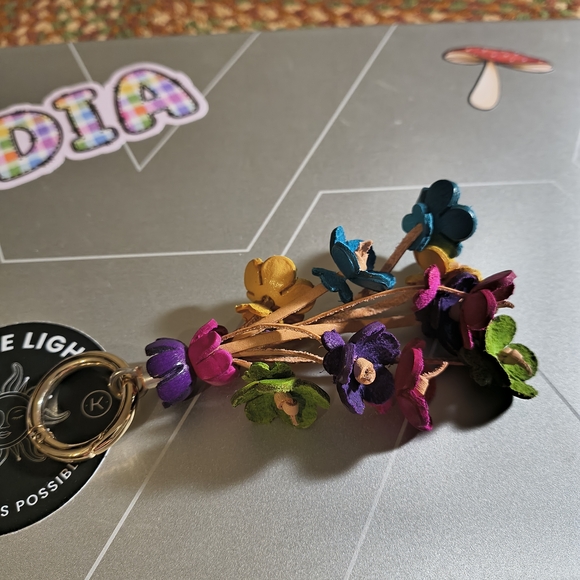 Vibrant keychain with multicolored floral accents. Perfect for adding a pop of color to your keys.
