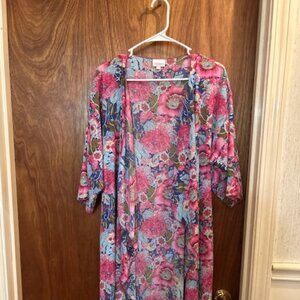 Colorful Floral Kimono Robe – Lightweight Open Front Boho Cardigan Size M