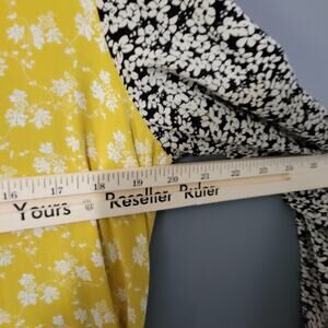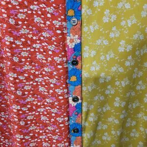 Embrace vibrant style with this colorful floral long sleeve dress. Perfect for any occasion, this dress features a striking combination of red, yellow, and black patterns. Add a pop of color to your wardrobe with this unique piece.