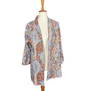 Colorful Floral Open Kimono Women Size Small Paisley Print Boho Vintage Style