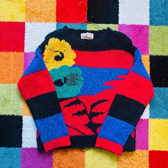 Brighten up your wardrobe with this vibrant sweater featuring a bold floral pattern. Perfect for adding a pop of color to any outfit.