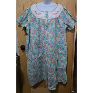 Colorful Floral Womens Nightgown With Embroidery & Snaps By Pink K Size 1X