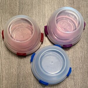 NEW. Keep your food fresh with this vibrant set of food storage containers. Featuring red, purple, gray, gold and blue colors, these containers add a pop of color to your kitchen. Perfect for organizing your pantry or taking meals on the go. Never been used.