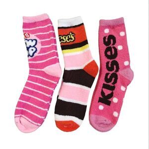Colorful Foody Junk Food 3 Pairs Fuzzy Winter Crew Socks NWT
