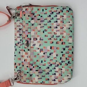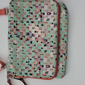 Stylish and vibrant crossbody bag with a colorful pattern. Perfect for adding a pop of color to any outfit. Gently used and in great condition! The inside has some ink stains, but outside is perfect! Adjustable crossbody strap for the perfect fit!