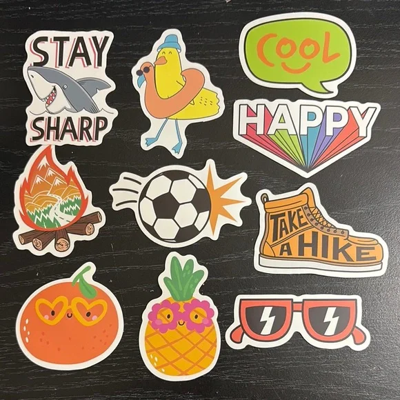 A vibrant collection of fun stickers featuring playful designs. Perfect for decorating notebooks, laptops, and more