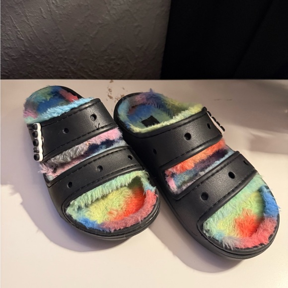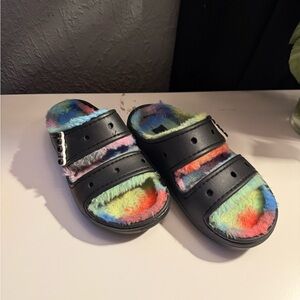 Fuzzy crocs gently used size men 4 women 6