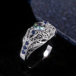 Colorful Gem Royal Blue Zircon Anillos Vintage Luxury Rings for Women, PD117