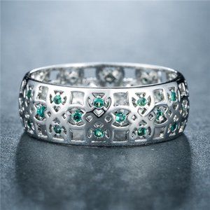 Colorful Gems Eternity Zircon Silver Vintage Ring for Women, EVGG1604