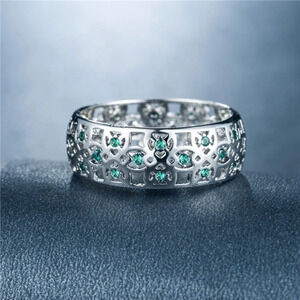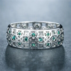 🍁 Colorful Gems Eternity Zircon Silver Vintage Ring for Women, EVGG1604