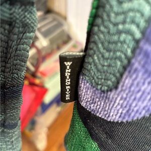 Vibrant Woman’s size S Reversible “Winding River” Jacket with geometric patterns. Features bold green circles on a red and purple background. Unique button-up design. Absolutely New Condition!!!